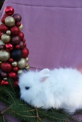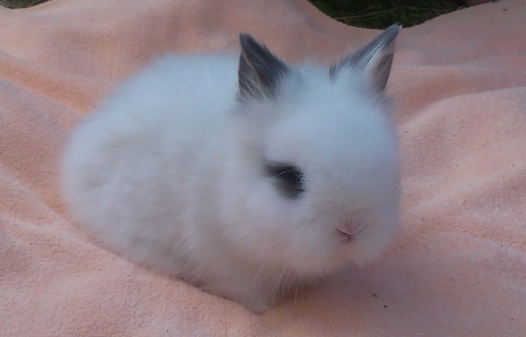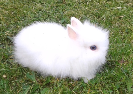 1. Janinka z Ráje - teddy samička F5 generace, vhodná do chovu na výstavy i na mazlíčka. Bílá modrooká.