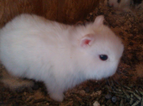 2. Jerry z Ráje - teddy sameček F5 generace, vhodný do chovu na výstavy i na mazlíčka. Bílý červenooký. V NOVÉM DOMOVĚ